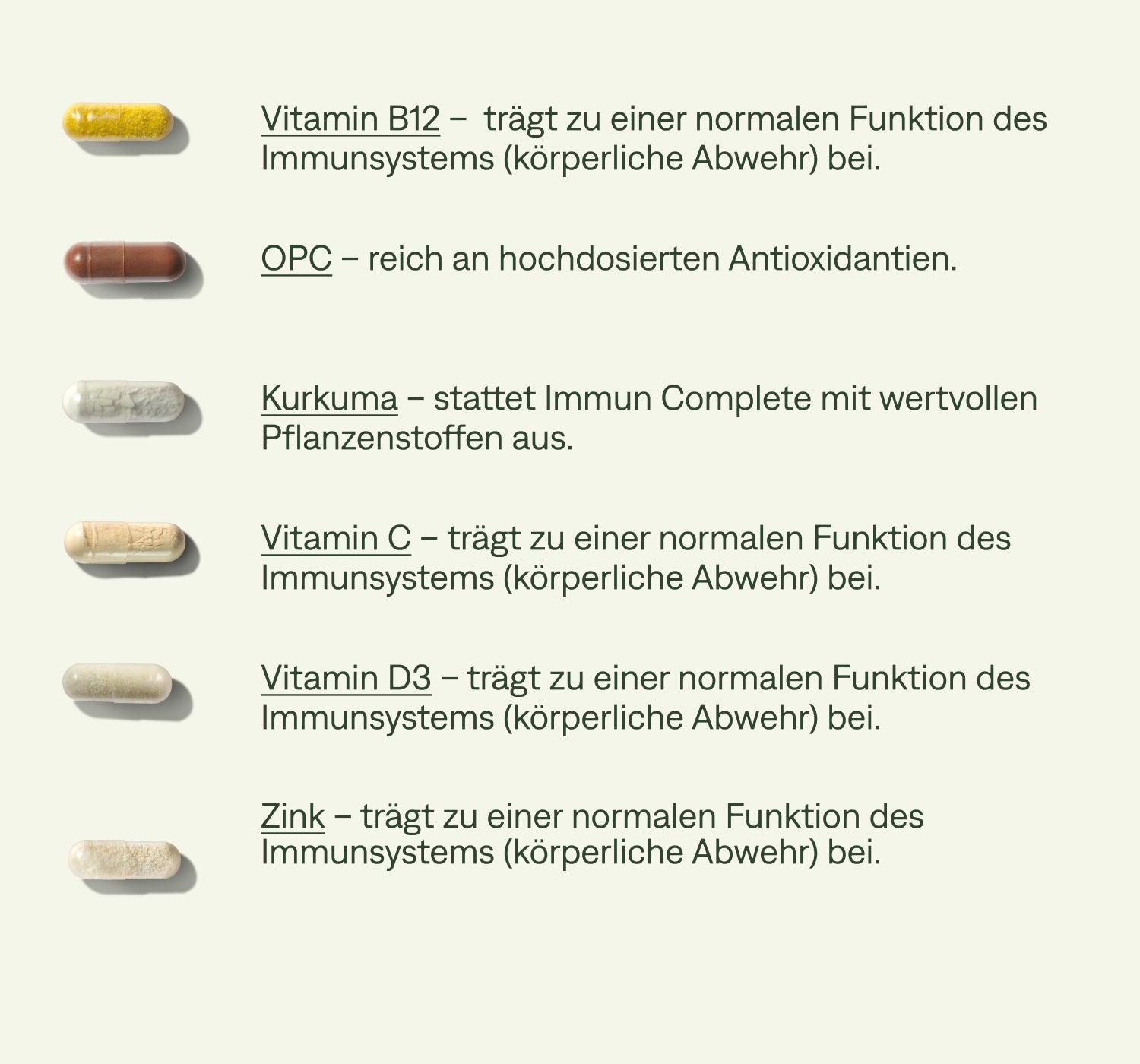 Die ideale Kombination aus Vitaminen, Mineralstoffen und Spurenelementen für dein Immunsystem – deine tägliche Unterstützung der körperlichen Abwehr.